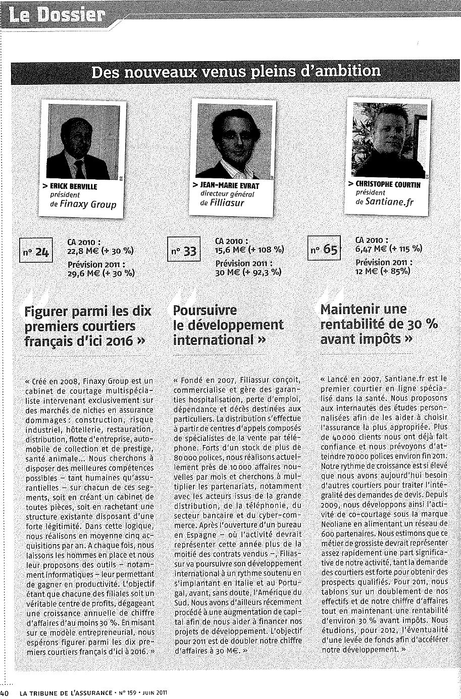 FINAXY Groupe dévoile ses objectifs dans un dossier publié dans La Tribune de l’assurance